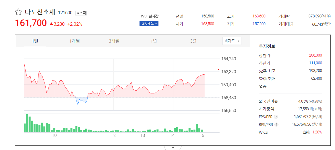 이번 글에서는 나노신소재의 주가 전망, 목표주가, 기업정보에 대해 설명한다. 주식에 투자하기 전에 정확한 회사 정보와 주가를 살펴보는 것이 매우 중요합니다. 나노신소재 종목의 주요현황과 투자정보를 확인하고 주가동향을 알아보도록 하겠습니다.