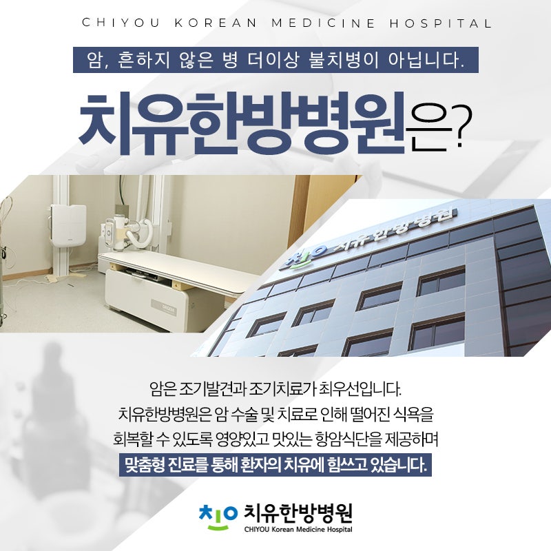편의시설 구축, 쾌적한 공기를 위해 병원 내 벽면에 그린윌을 설치해 두고 언제든지 편리하게 음식을 섭취할 수 있도록 샐러드바를 구축해 놓았으며 병동생활 중 원하는 때 운동이 가능하도록 운동시설을 구축해 놓고 아로마테라피와 병동생활 속 활력 증진에 도움이 되는 세로토닌 프로그램 등을 통해 환자의 병동 삶의 질을 높일 수 있는 다양한 시설과 프로그램을 구축해 두었습니다.장덕한방병원 면역암센터 서울특별시 서초구 효령로 304 국제전자센터 12, 13층 예약장덕한방병원 면역암센터 서울특별시 서초구 효령로 304 국제전자센터 12, 13층 예약장덕한방병원 면역암센터 서울특별시 서초구 효령로 304 국제전자센터 12, 13층 예약