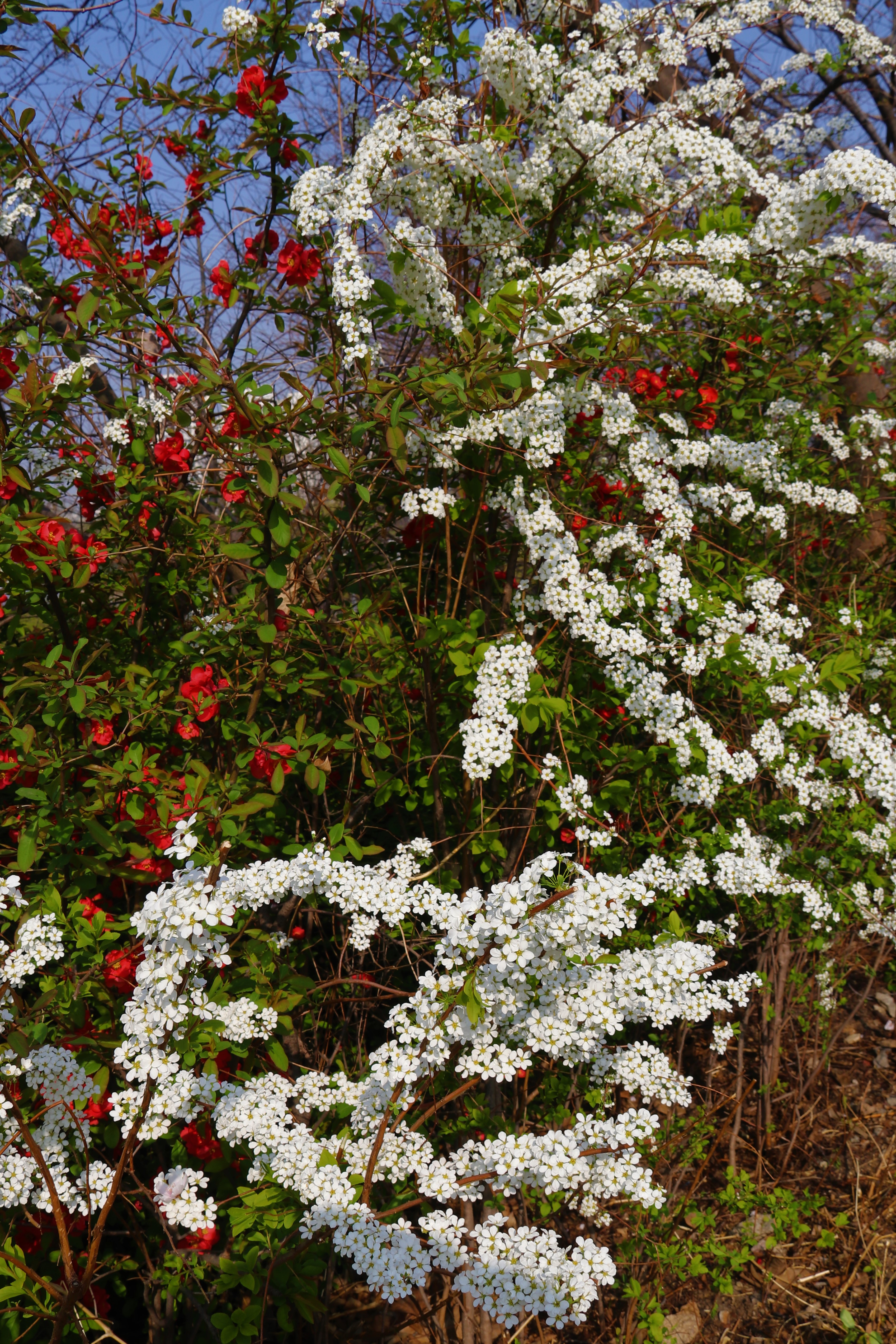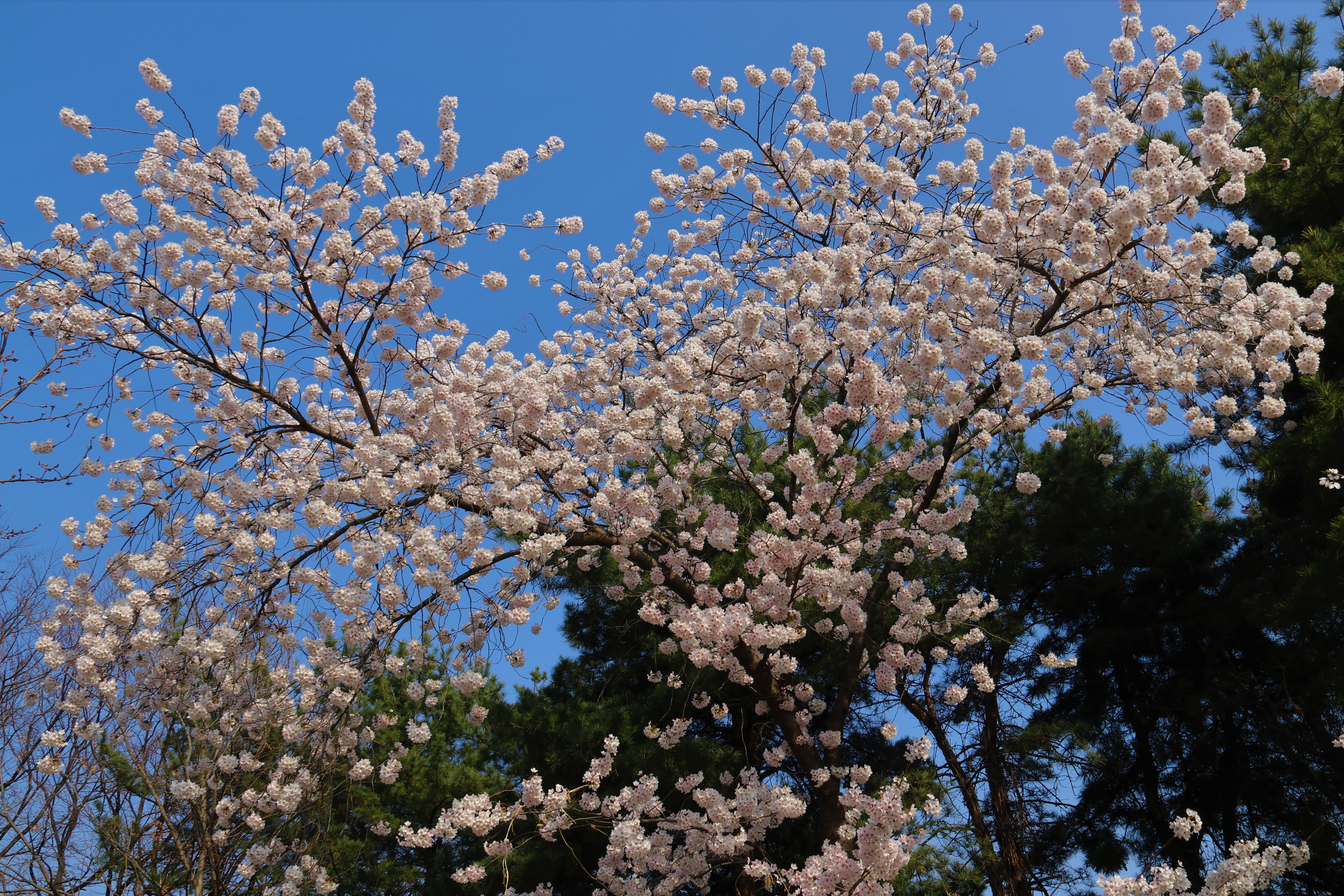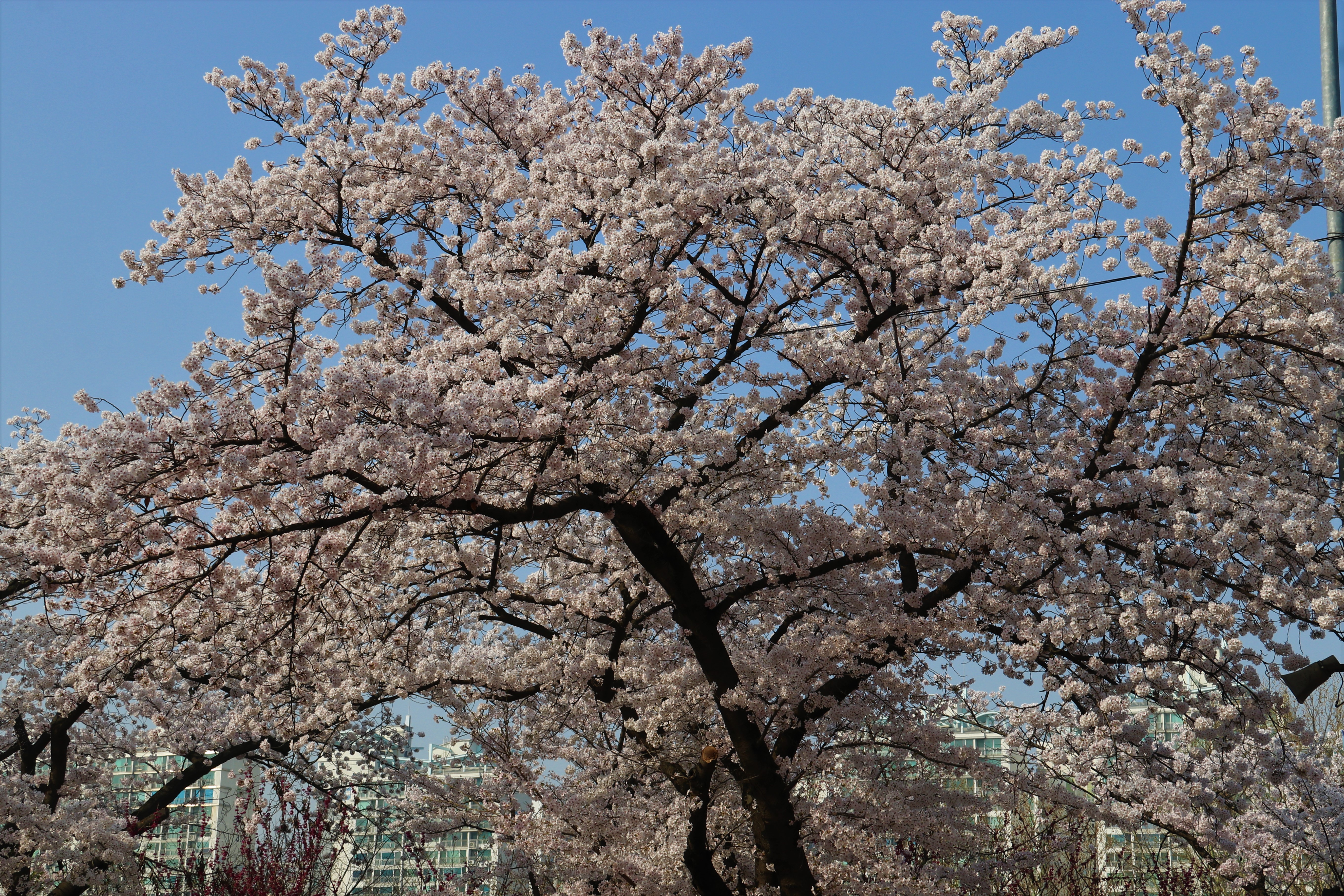 만개한 벚꽃으로 가득한, 큰 크기 ‘대벚꽃‘그리고 여전히 남아 ‘흰 매화‘, 빨간색 ‘명자나무꽃‘, 하얀색 ‘클로버‘수업 ‘목련 나무‘, 노란색 ‘개나리 꽃‘ 등의 봄꽃 사진을 찍었습니다..
