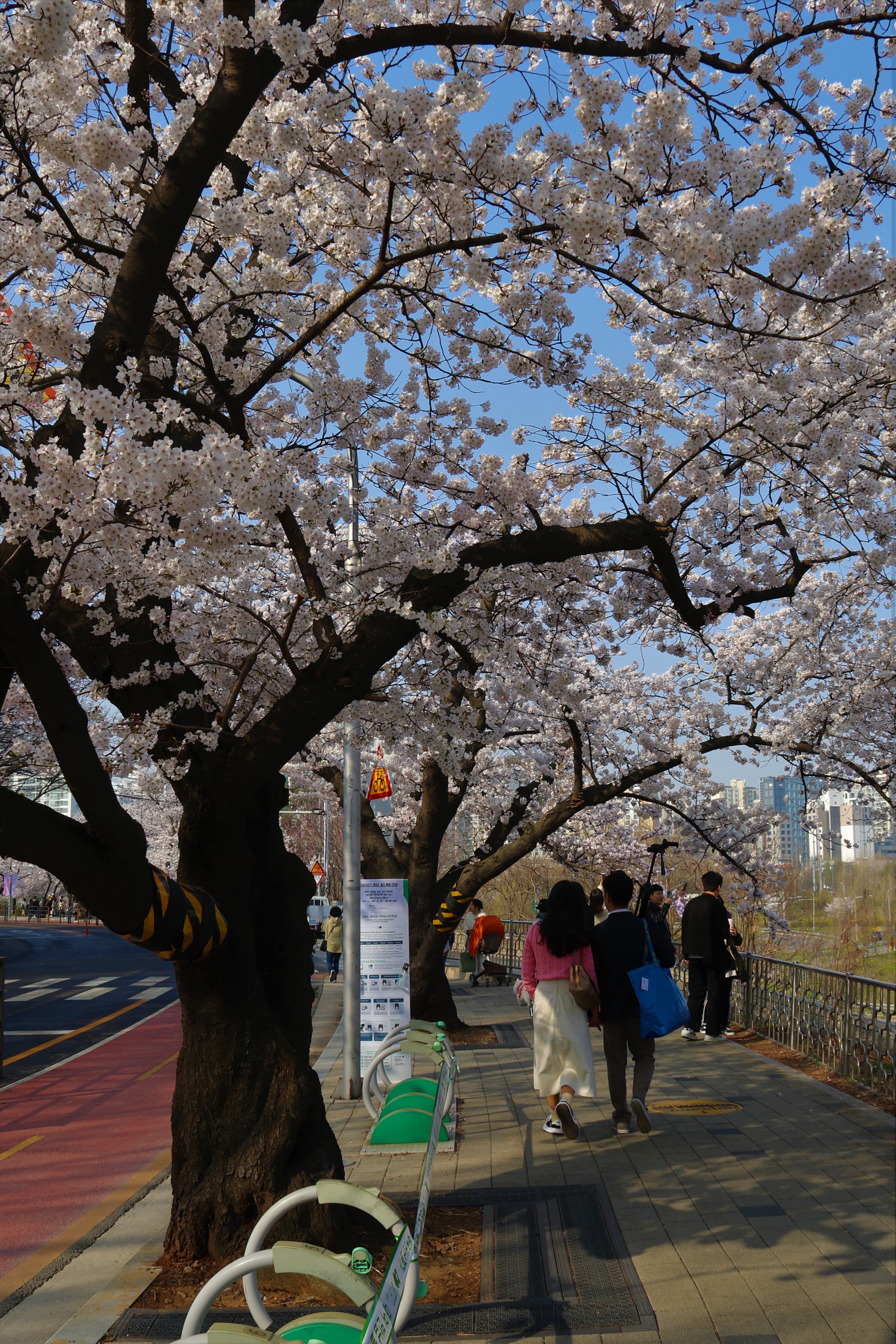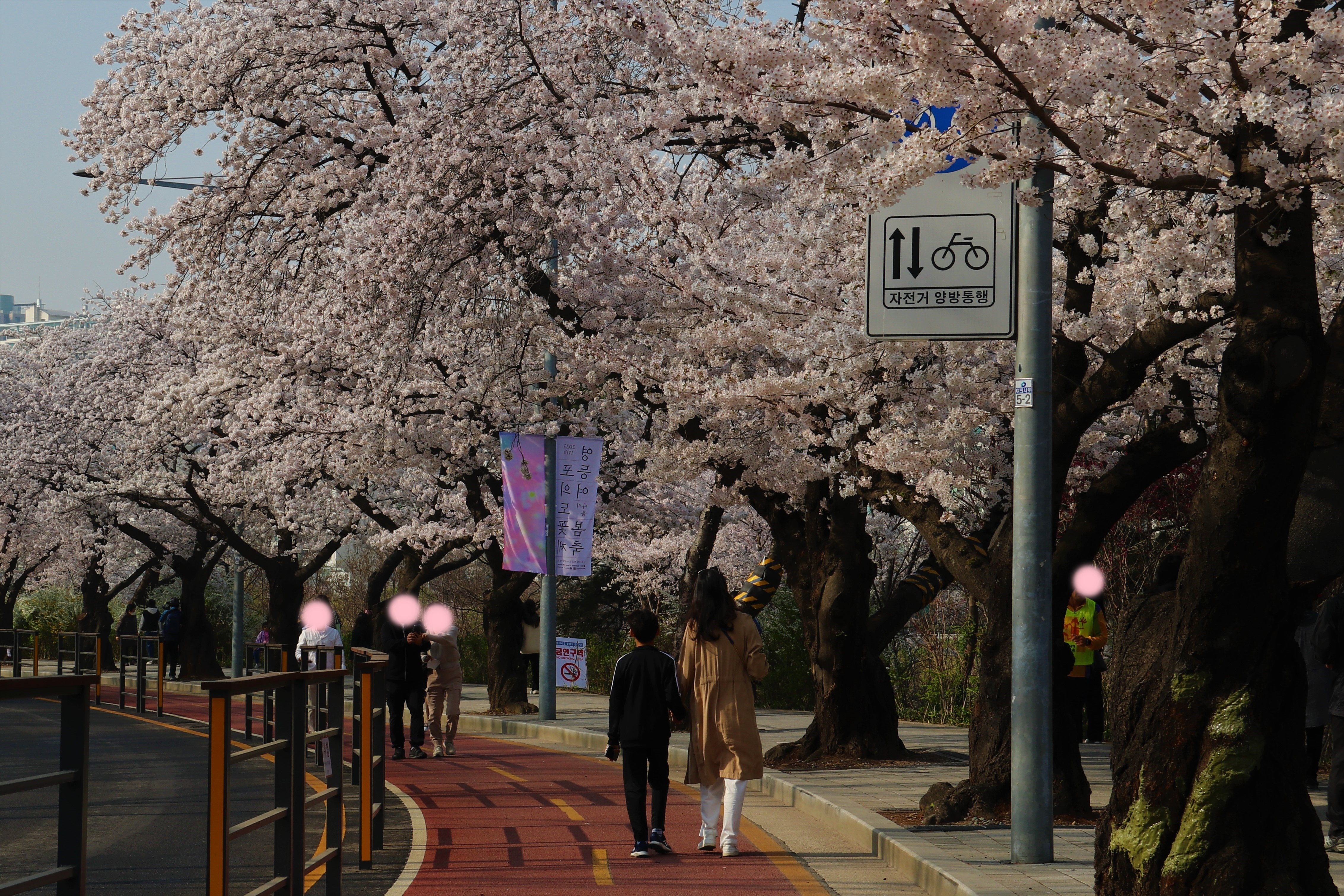 사람들의 활기찬 표정과 벚꽃의 조화가 마음에 듭니다., 사람이 너무 많아서 주말이나 피크 시간대에는 디테일하고 감성적인 사진을 찍기가 매우 어렵습니다.. 이른 아침에 조용히 생각하면서 나만의 다른 시각으로 사진을 찍는 것이 좋습니다.. 이른 아침에도 의외로 많은 사람들을 만날 수 있습니다.