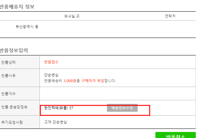땀 뻘뻘 흘리는 반품접수를 이렇게 알게 되었습니다.